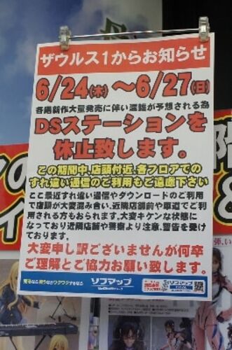 ぽんばしわっ!(・△・)/ ポンバシでニンテンドーDSのすれ違い通信といえば、オタロードに面したソフマップザウルス1ソフト館へと足を向ける方が多いかと思います。 そのザウルス1から、DSステーションの一定期間休止のお知らせが出ています。 休止期…