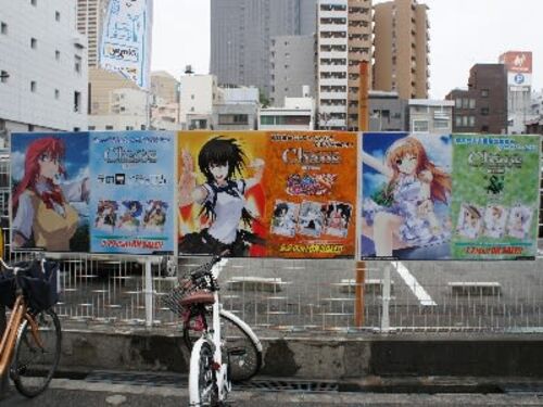 ぽんばしわっ!(・△・)/ 4月上旬から未だにブシロードのアドトレーラーがポンバシ界隈を走り回っていますが、オタロード沿いのタイムズのフェンスに並ぶお馴染みの広告パネルが昨夜リニューアルされていました。 Weiβ Schwarz(ヴァイスシュヴァルツ)か…