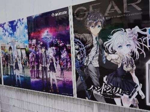 ぽんばしわっ!(・△・)/ オタロードのタイムズ添いに並ぶ広告パネルが、現在テレビ放送中のアニメ「ハンドシェイカー」の広告になっていました。 「ハンドシェイカー」はアニメイト30周年記念応援タイトルというわけで、オタロードのアニメイトビルも登場…