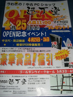 25日オープンの中古パソコン店『迅丁堂』の告知でした。