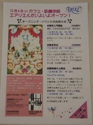 オープニングイベントとして、4日・10日は妖精学入門口座(講師:日本妖怪研究所)、5日は妖精音楽会、6日は妖精映画上映会がある。