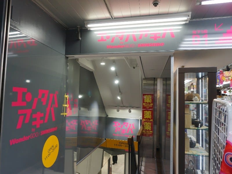 外神田1丁目、中央通りの総合生活家電専門店「オノデン本館」の地下1階に、ゲームやグッズの販売&展示スペースを設けた「エンタバアキバ by WonderGOO / SHINSEIDO」が4月26日にオープンするそうで準備が進められていました。