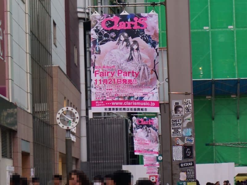 11月21日に発売となるClariSの5thフルアルバム「Fairy Party」の告知が、秋葉原駅電気街口駅前街頭フラッグで展開となった。