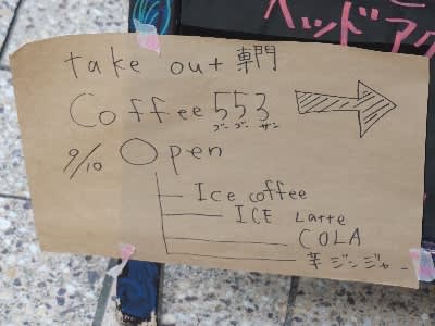 2016-09-10 4丁目の日本橋商店会エリアにテイクアウトのコーヒー店「553」がオープン グルメ(アキバ・ポンバシ) ぽんばしわっ!(・△・)/ 日本橋4丁目の日本橋商店会エリアにテイクアウトのコーヒーショップ「Coffe553」が9月10日にオープンとなった。 2週間ほど前に準備の様子を通りがかりに見たときはアンティーク雑貨の店かな?と思ってたんですが、コーヒー屋さんだったんですね。 「made in HAND」の西隣となっていますよ。 ■Coffe553 ■大阪市浪速区日本橋4-17-3